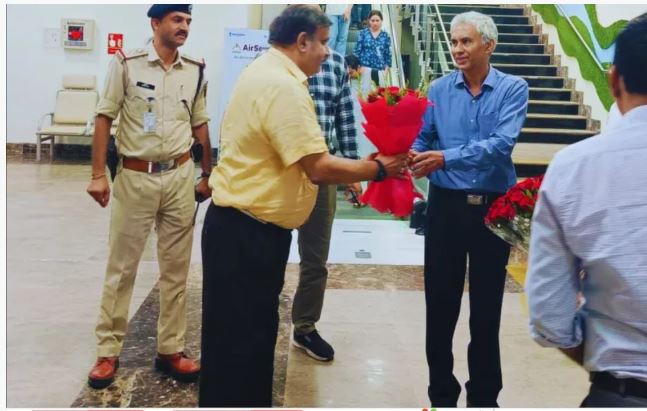 स्वागत समारोह: भोपाल एयरपोर्ट पर मुख्य सचिव का स्वागत संभागीय आयुक्त संजीव सिंह और भोपाल कलेक्टर कौशलेंद्र विक्रम सिंह ने गुलदस्ते के साथ किया।
